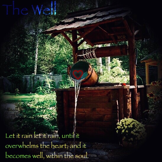 Come drink, have your fill. My heart is a brick house, but my soul needs every bit of your tender rain. Your love is what makes my heart feel complete, my void it fills. I am whole, your love gives my soul true depth. My heart overflows from the rain; I Am, Well.