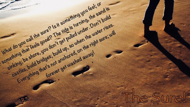 Footprints within the sand, were there to show me where I’ve been; but not where Your love wants to take me? All that time standing still, because of what others said. They said that they’re absolutely shore, that you shouldn’t go deeper; just build another castle, in the forever shallow end. But my heart heard the call, a love as wide as the ocean. I had to stand, on what I know to be sure; God’s love is the one thing, I know is sure!