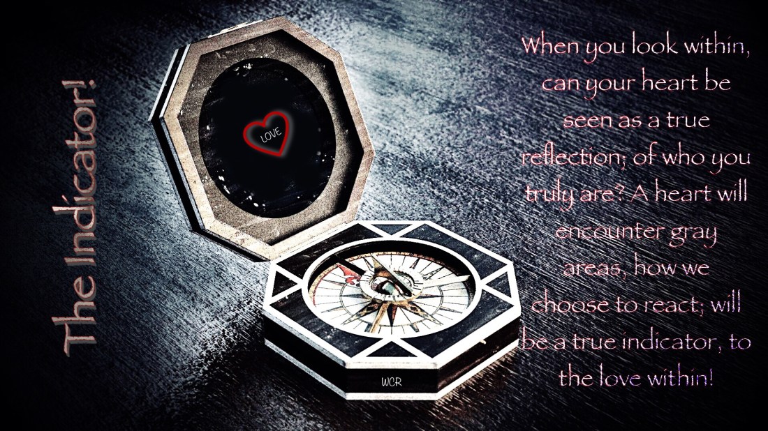 Take your soul to the next level, let your heart be a clear indication; of the true you. A true indication, will never be about affluence; but the measure, of what it can influence? If someone was to gauge your heart, would it reflect hot, or cold? A broken barometer, will never indicate true change. It’s never about feelings, that can change like the wind. Blow a mind, not with the warm, the fuzzy; the unclear. Check the functionality of your internal compass, does it identify; the true positioning of your heart? To what guides, not what controls. Set a mark, but don’t lose sight of the signs; hidden intersections, are crucial crossroads!