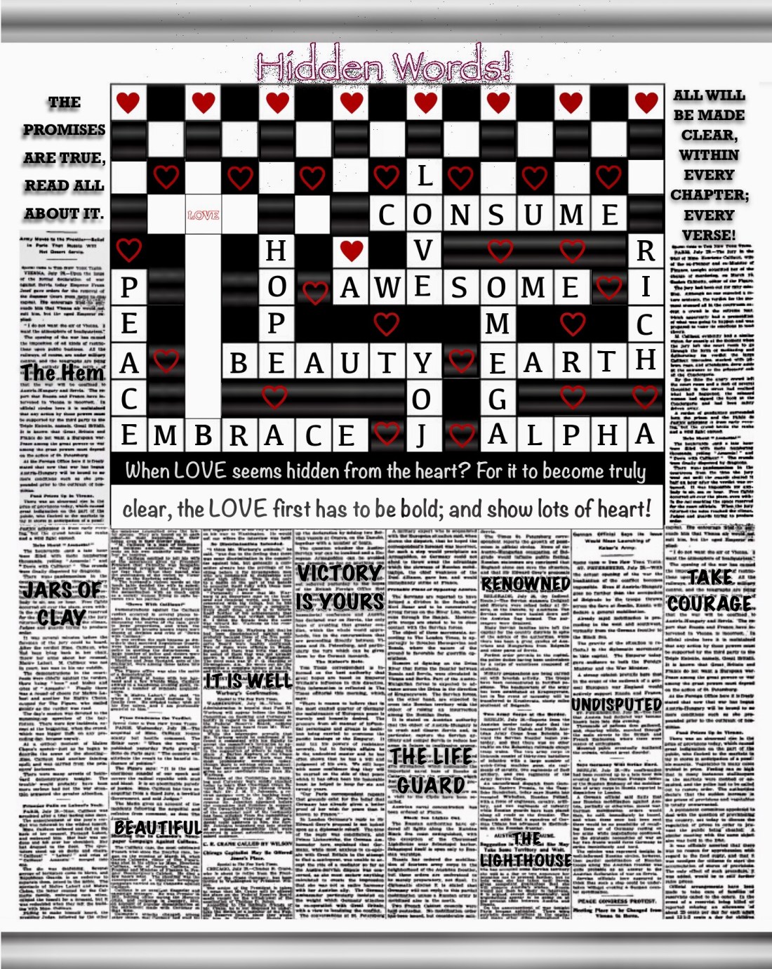 Hidden meanings, words a soul feels; but the truth within real love, still hidden from so many hearts. The seen, but unseen; love isn’t just about feelings, but knowing. Love is word that so many ponder, a word that makes a heart wonder. Can my soul truly see, can my heart forever know? A heart at a crossroad, a heart on a journey. Wanting to find, needing to know; a love not hidden, but very much a Cross-word. A word that crosses the mind, no need to look at it cross-eyed. Let it cross your heart, the hope; to die forever in love!