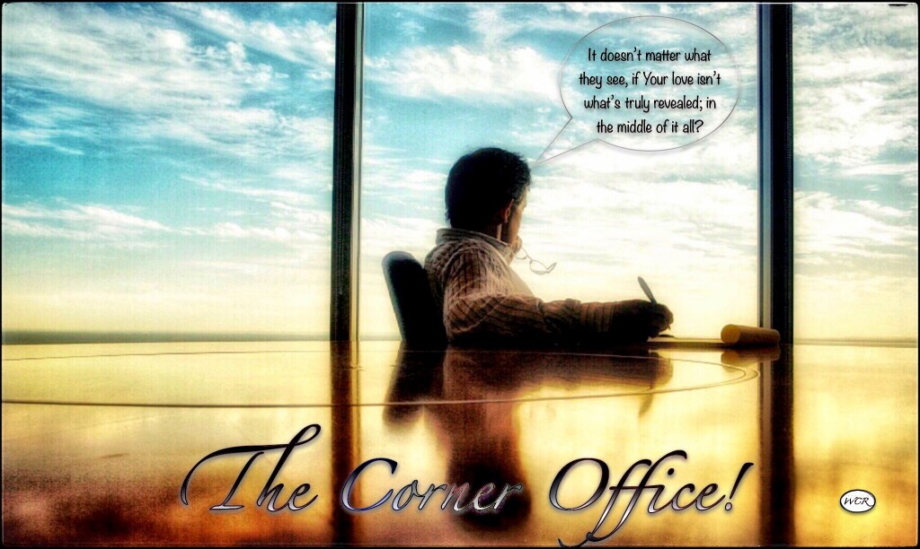 It’s Your sacrifice, that has shown a heart how to rise up every day, and shine even brighter. So many, seek after monetary gain. Just to realize, they’ve only gained; a truly empty heart. Incorporating; mind, body, and soul. How a heart focuses on the bottom line, the pursuit of Your heart. Your love gives so much guidance, challenges my heart to give… the very best inside. It’s not about hard work, but true dedication. Undistracted devotion, that’s how love truly grows. Your love alone gets the credit, why my heart has even grown. You don’t need to promote yourself, in my heart; Your love will forever reign. Your love has achieved, what no other heart can ever claim; King of my heart. You do Your best work, by Your love having a permanent place; in heart, and soul. Your love will forever have the best view, so You can continue to watch the love grow; from The Corner Office!