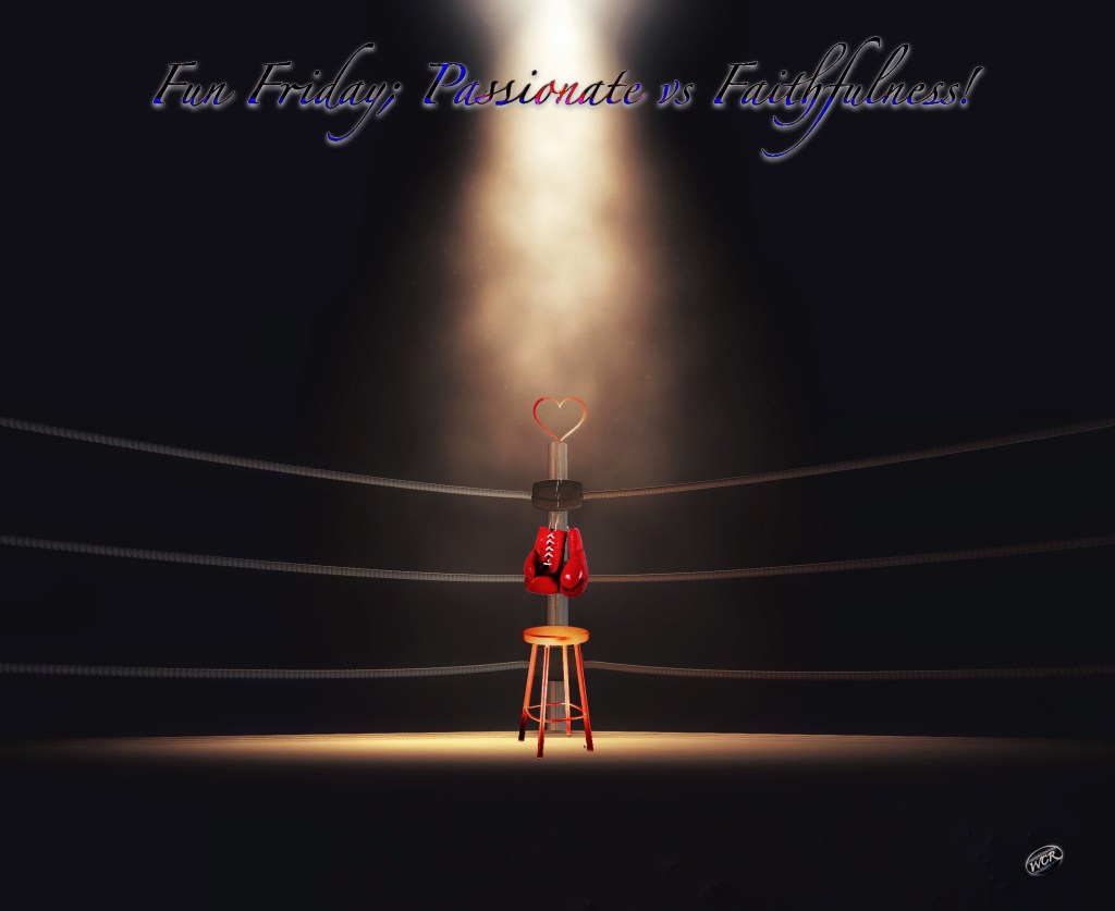 Passionate, Faithfulness; two true heavyweights. They, might seem in the same weight class. Spoiler alert, one will emerge greater, than the other. Both, have stand alone power… in their own right. But together, the combination will be epic. Both, know how to press in, and accept the challenge. Never backing down, when the day calls your heart out. So, deliver a heartfelt moment, worth remembering. The heart and soul, both getting a ringside seat. Watch a-bout, how they intend to square off. Passion, for short, has a deep desire. Give chase, pursue the prize, with vim and vigor. The downside, to Passion? Becoming easily distracted, by a wayward heart. Faith will never be, a short-handed approach to Faithfulness. Faith, needs to be the substance. That Will, produce the evidence… Pound for pound, the strongest muscle in the body; the heart. Passionately, a heart will step to the podium. But the soul, tells a heart. You have enough faith, to fight through every adversity. One, looks to take center stage, have the top billing. The other, looking to take the stand. With hard work, and dedication; be the greatest. Some days, the battlefield is the mind. Going toe to toe, with the heart. But, when love prevails. The stand, becomes shoulder to shoulder. So the outcome will be, heart to heart!