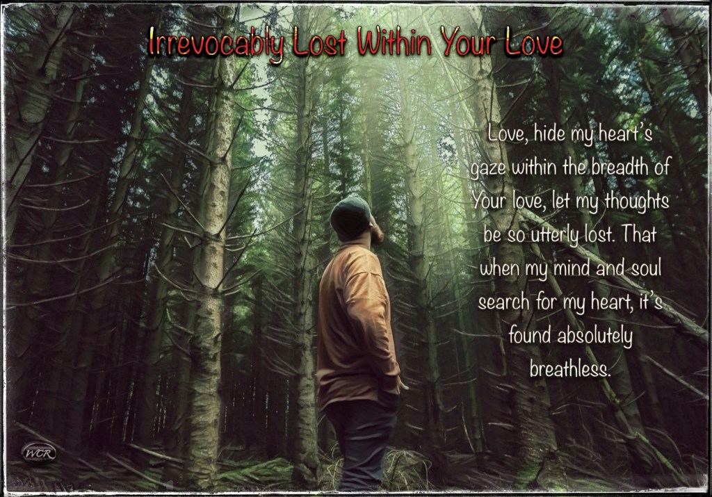 Lost, forever lost within your love; my heart wants to be irrevocably found, captured by the essence of your love. Closer, closer to your heart; my soul is drawn to the gravity of your love, breathless my heart destined to eternal be. Deeper, deeper into the depth of your love; my heart wants to descend deeper into your heart, to fathom the breadth of your love. Glimpses, just a mere glimpse into your heart, and your love is forever seared into the crevices of my innermost. Facet, every facet of your love renders my soul utterly speechless. Show, show my heart how to be perpetually lost, drawn even closer, fall even deeper. Until the very gravity of your love, is another strand of my heart’s enlightenment. That sublime love has brought my heart and words to this place that I am now irreversibly found, lost.