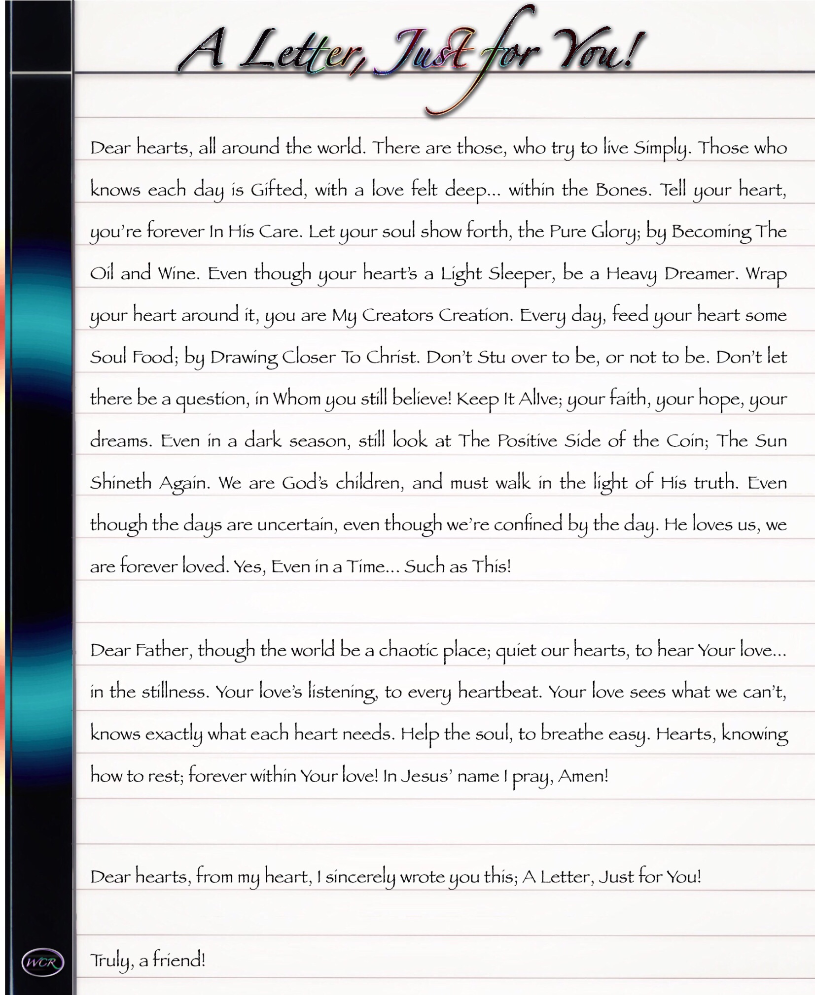 What if, my soul didn’t want to gaze forever, into Your heart. Could this heart of mine, truly know endless? A love that shimmers so bright, beyond amazing?