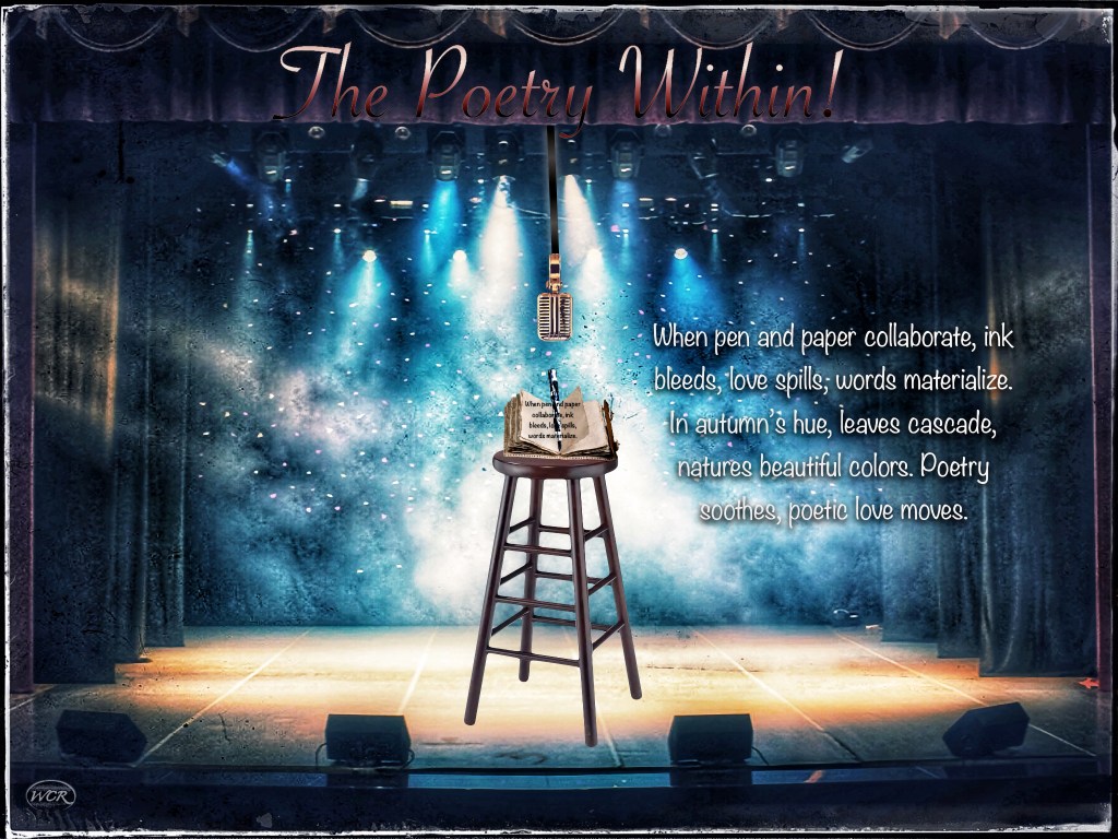 Let poetry speak, let it have meaning, beyond the narrative. Let it inspire, let it move, let it provoke. In its creativity, with its positivity, it will captivate. Thus, poetry is. It doesn’t need your mojo, not swayed by the back and forth, within your mind. No, no, poetry doesn’t need swagger, for words to matter. When pen and paper collaborate, poetic hues extrapolate, spoken word elaborate, elevated prose levitate. Poetry’s quintessence, leaves no room for debate. A poet’s heart, has only one intent, inked words in a rhythmical flow. The soul’s poetic muse, the heart’s most profound soliloquy, verses in reverse. The most telling poems, leaves you something to ponder, over and over. Poetry paints a story, love abstracts the meaning. When time and space collide, composition become. Though like moves, love what leaves an impression. Heart and soul synchronically inclined, poetry rhythmically refined. Words are never silenced, when love speaks. Within the poetry, breadth becomes… more than words!